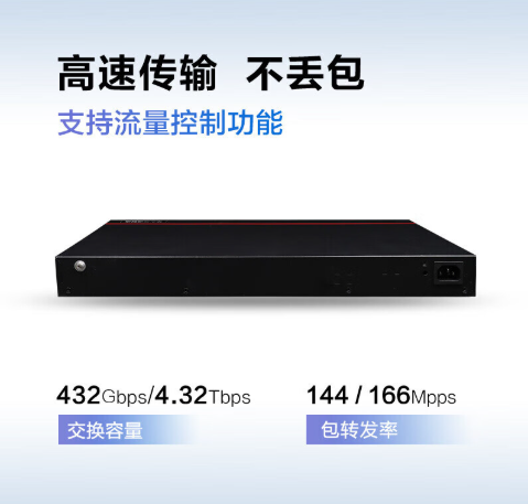 | S5735S-L48T4X-A1 (48个10/100/1000BASE-T以太网端口,4个万兆SFP+,交流供电) 交换容量672Gbps/6.72Tbps,包转发率166Mpps |