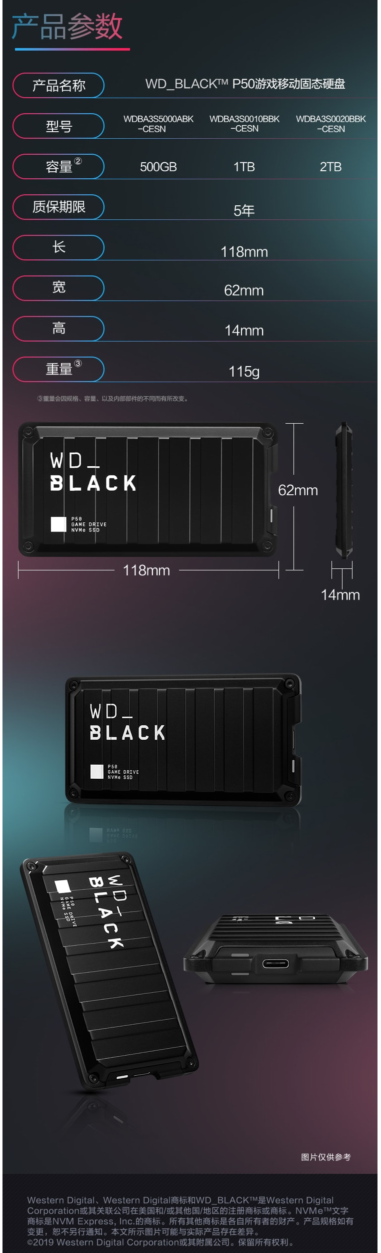 > 电脑 办公 硬件外设 > 存储设备 > 西部数据(Western Digital)500G USB3.2 移动硬盘 固态(PSSD) WD_BLACK P50游戏硬盘 WDBA3S5000ABK