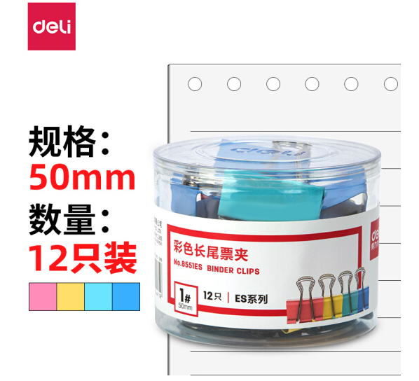 得力(deli)12只50mm彩色长尾夹票夹 1#金属燕尾夹票据夹子 办公用品 8551ES